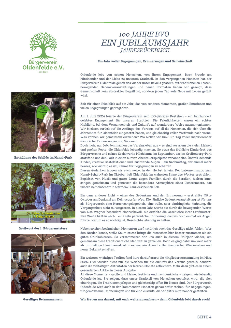 Mit dieser Ausgabe werfen wir einen Blick auf die aktuellen Entwicklungen im Bürgerverein, stellen den neuen Vorstand vor und zeigen, was sich in den letzten Monaten bei uns im Stadtteil getan hat.
